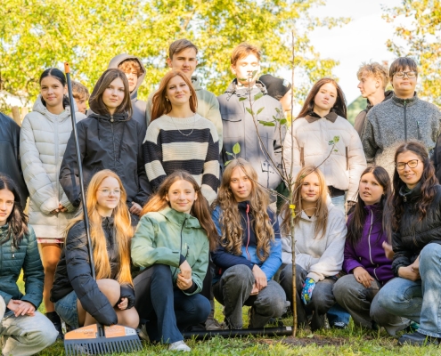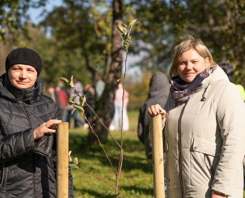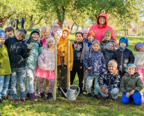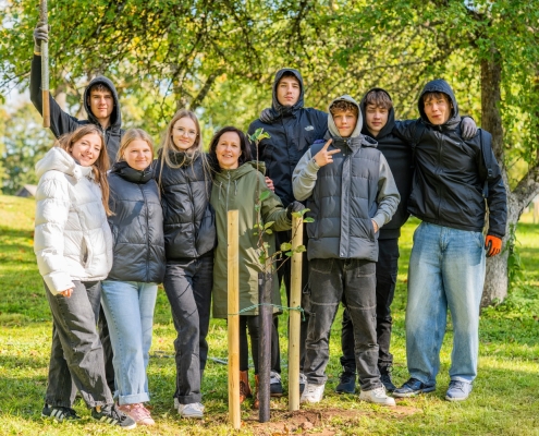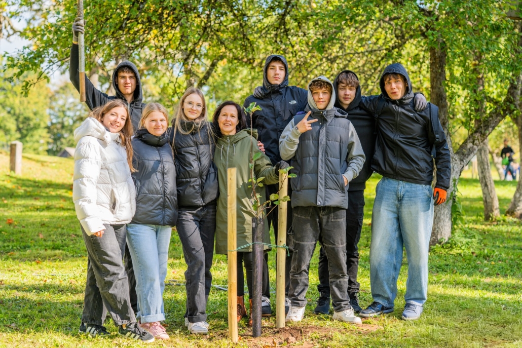 Gaidot skolas salidojumu, katra klase ābeļdārzā iestādīja divas jaunas ābelītes, ko skola dāvinājumā saņēma no kokaudzētavas “Bētras”. Kopā ar skolas bērniem ābelīšu stādīšanā piedalījās biedrības “Reāls piedzīvojums” pārstāvji un viesi no Ukrainas – cilvēki ar īpašām vajadzībām, kuru pansionāts kara sākumā tika sabombardēts un kuri jau trešo gadu mitinās pansionātā Latvijā. Šī akcija apliecināja, ka solidaritāte un savstarpējs atbalsts ir universālas vērtības.
