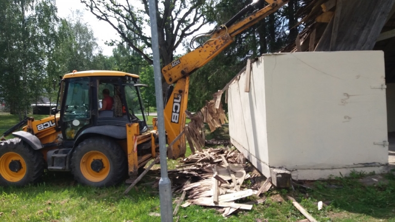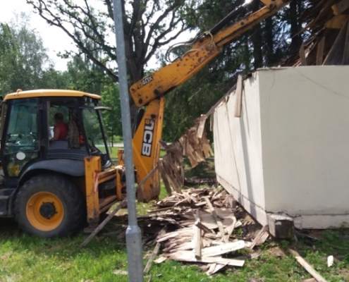 2002.gadā, izbūvējot skolas estrādi, āra klase un aktivitāšu laukums tika likvidēti. Jauna āra klase tika izveidota zālājā pie sarkanās skoliņas. Tur mazāk tika vadītas nodarbības, vairāk skolēni pavadīja brīvo laiku pēc stundām. Diemžēl šīs āra klases mūžs nebija ilgs – pēc pāris gadiem laikapstākļu nodarīto bojājumu dēļ galdi un soli vairs nebija lietojami. Tāpat 2019.gada vasarā tika demontēta arī āra nojume, jo tā mācību procesā maz tika izmantota un bija kļuvusi par nepievilcīgu vietu.