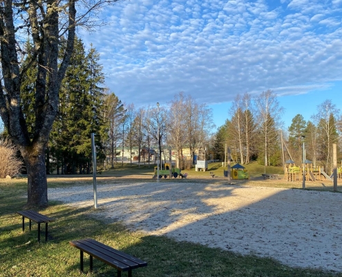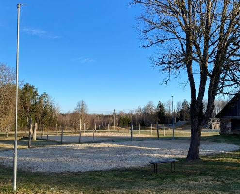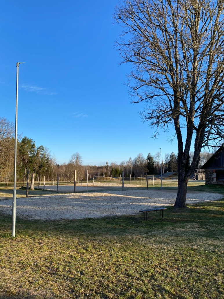 2003.gadā vecā āra aktivitāšu laukuma vietā pēc Vecpiebalgas vidusskolas sporta skolotāja Māra Krama iniciatīvas un ar skolas absolventa Māra Pinkas atbalstu tika izveidots pirmais pludmales volejbola laukums. Tā kā spēlēt gribētāju skaits strauji auga, 2009.gadā ar Vecpiebalgas novada pašvaldības atbalstu tika izveidoti vēl 2 pludmales volejbola laukumi. Šo laukumu labiekārtošanā (norobežojošo sētu izveide) atbalstu sniedza skolas absolventa Kriša Driķa tēvs. Tā kā pludmales volejbola laukumus aktīvi izmantoja ne tikai skolēni, bet arī Vecpiebalgas novada iedzīvotāji, par to uzturēšanu ilgus gadus rūpējās gan sporta skolotāji Agita un Māris Krami, gan sporta dzīves organizators Vecpiebalgas novadā – skolas absolvents Toms Praulītis. Šie laukumi joprojām ir iecienīta skolēnu un arī apkārtējo pagasta iedzīvotāju aktīvās atpūtas vieta. Lai labiekārtotu pludmales volejbola laukumu teritoriju, skola vairākkārt veiksmīgi piedalījusies Cēsu novada kopienu iniciatīvu projektu konkursā. Par iegūto finansējumu 2023.gadā tika uzstādītas laternas, 2024.gadā – iegādāts velo statīvs, atkritumu konteiners un ierīkoti 3 soliņi skatītājiem.