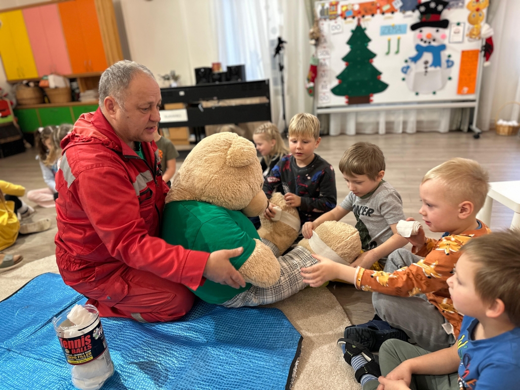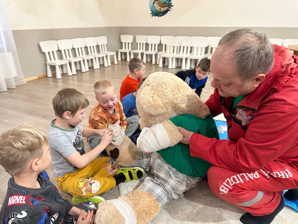 Savukārt šī paša projekta ietvaros pirmsskolēni piedzīvoja nodarbību “Mazie glābēji- pirmās palīdzības draugi”. Ir lieliski, ja jau 5 un 6 gadu vecumā bērni zina pamatlietas, kā rīkoties, kad jāsauc palīgā pieaugušie, kā to izdarīt, kur un kā jāzvana.