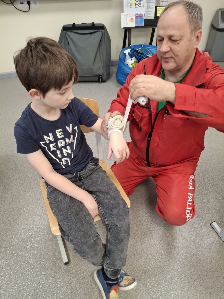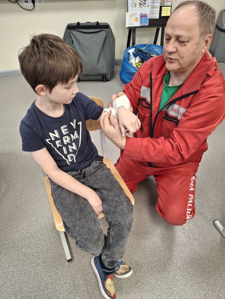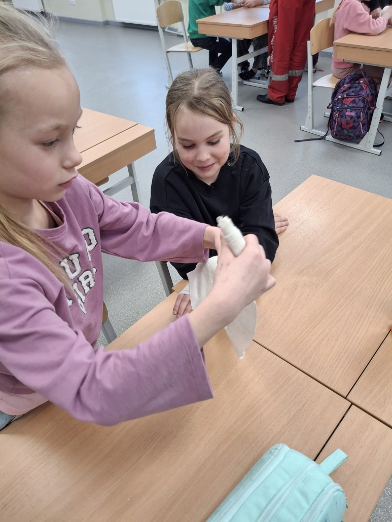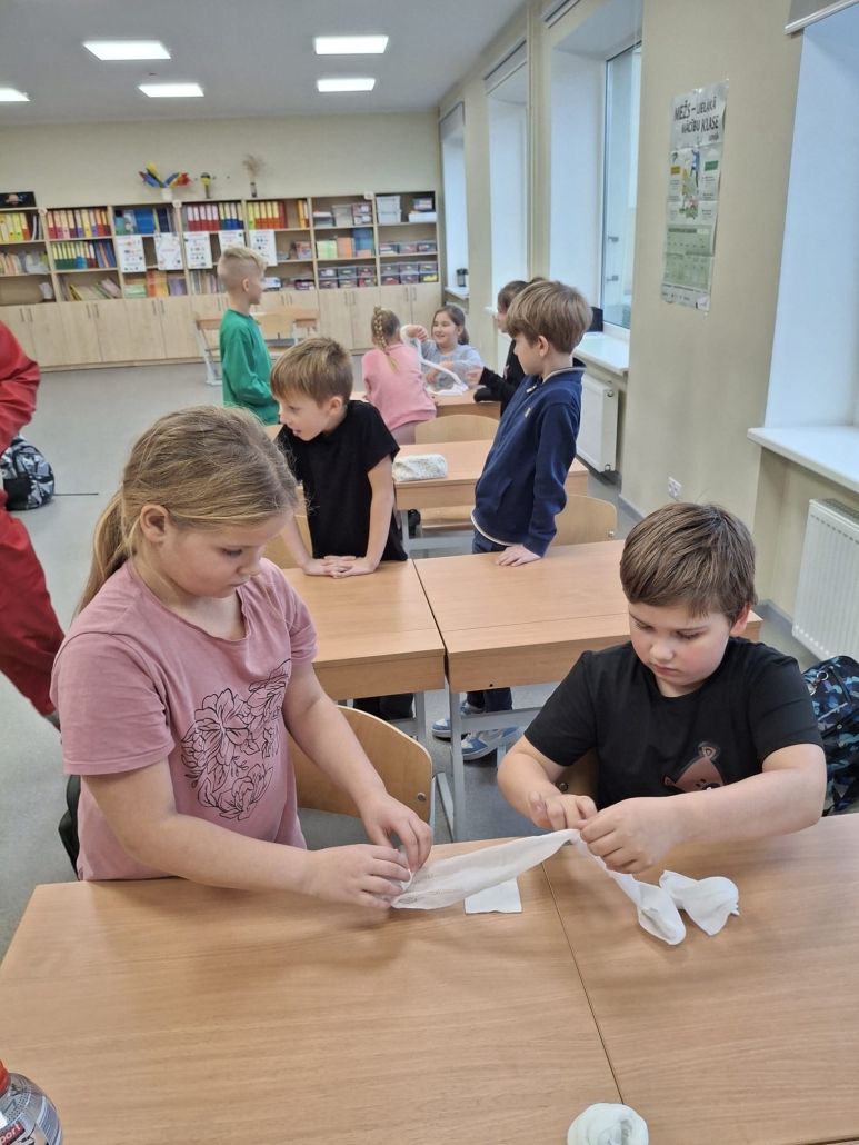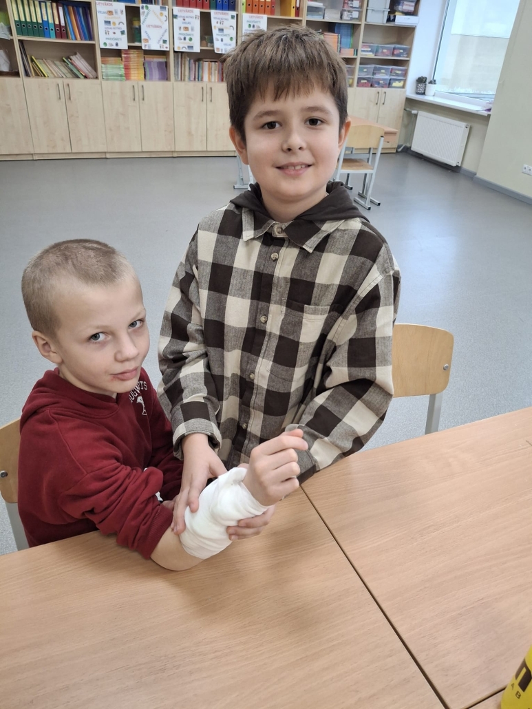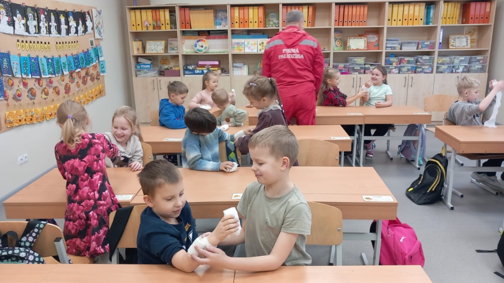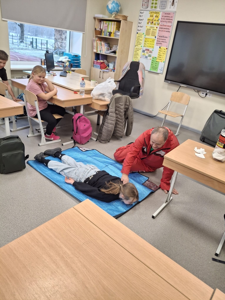 Sākumskolas skolēni 3.decembrī ESF+ projekta Nr.4.2.2.1/1/25/I/001 “STEM un pilsoniskās līdzdalības norises plašākai Izglītības pieredzei un karjeras izvēlei” ietvaros piedalījās nodarbībā “Pirmās palīdzības piedzīvojums”. Nodarbības laikā skolēni izspēlēja situāciju, kurā bija jāsazinās ar Neatliekamās medicīniskās palīdzības dienesta dispečera, tādējādi mācoties strukturēti un pareizi sniegt informāciju par notikumu. Sadarbojoties pāros, skolēni viens otram apsēja iedomātas brūces, praktiski apgūstot vienkāršākos pirmās palīdzības soļus. Pēc nodarbības skolēni zina, kā rīkoties dažādās ikdienas situācijās- piemēram, ja sāp vēders vai sāk asiņot deguns. Aktivitāte bija gan izzinoša, gan aizraujoša, un vairāki skolēni atzina, ka šāda pieredze likusi aizdomāties par iespējamu nākotnes karjeru medicīnas jomā.