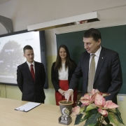 Savukārt 2015.gada 8.decembrī skolu apmeklēja Latvijas Valsts prezidents Raimonds Vējonis ar kundzi Ivetu Vējoni. Ar prezidentu vispirms tikās Izglītojamo pašpārvalde (vadītāja Maira Asare un vietnieks Jēkabs Zommers), klašu vecākie un skolas direktore Lolita Žagare. Teikdams spēka vārdus, prezidents podiņā iestādīja 3 ozolzīles. Aktu zālē prezidents teica uzrunu un atbildēja uz skolēnu jautājumiem. Atvadoties prezidents novēlēja: “Lai spējam viens otrā labāk ieklausīties un teikt cits citam labus vārdus!” 2017.gada 1.septembrī no zīles izdīgušais ozoliņš tika iestādīts pie Absolventu alejas.