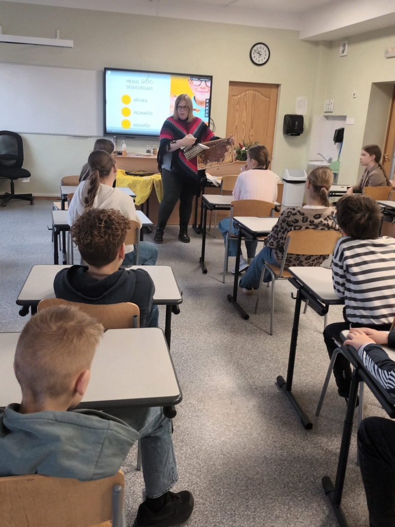 11. decembrī 4.–6. klašu skolēni piedalījās izzinošā pasākumā “Eiropas Medus brokastis 2025”, kuru vadīja biškope Madara Zustere. Pasākuma laikā skolēni iepazinās ar bišu dzīvi stropā, uzzināja, kā rodas medus, kādas ir tā īpašības un kā to lietot ikdienā. Praktiskajā daļā skolēni degustēja trīs dažādus medus veidus, kā arī ziedputekšņus un bišu maizi.