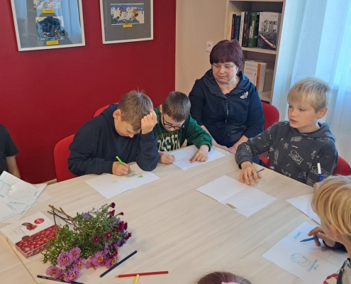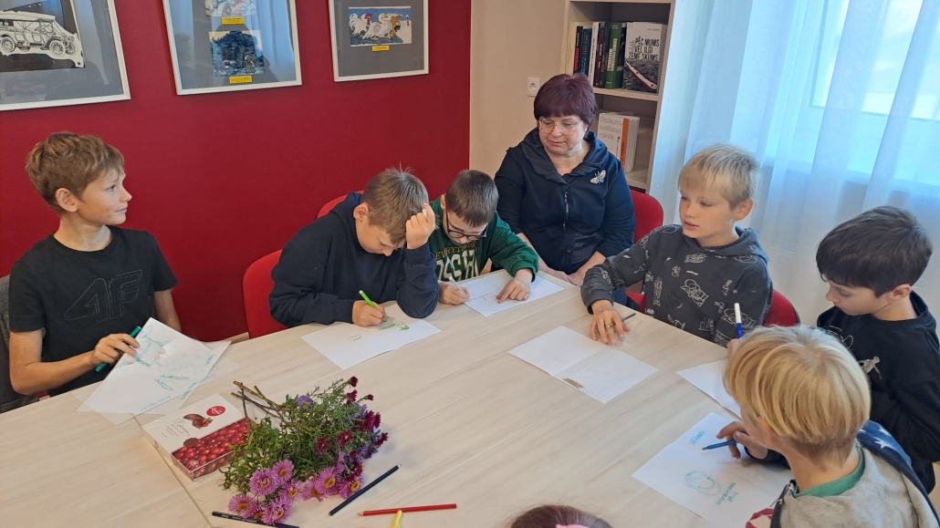 Kad rudens iekrāso kokiem lapas, tad gribas to skaistumu aprakstīt dzejnieku, rakstnieku vārdiem. Bet kā to izdarīt pašam, ja vēl neesi ne dzejnieks, ne rakstnieks? Lai to noskaidrotu, devāmies uz Vecpiebalgas pagasta bibliotēku, kur mūs gaidīja bērnu grāmatu autore Inese Valtere.