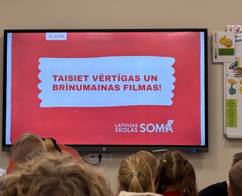 21.novembrī skolā notika izzinoša nodarbība 1.-3.klasei “Teksts un attēls kustībā”, kas organizēta pateicoties programmai Latvijas skolas soma. Nodarbībā skolēni sadarbojās un grupās pētīja grāmatas, meklējot interesanto, kas stāstu pārvērstu animācijas filmā, lai tā būtu vērtīga. Mums bija pirmreizēja iespēja redzēt reklāmas rullīti filmai, kas uz ekrāniem nonāks tikai nākamā gada septembrī. Redzējām kā top animācijas filma un uzzinājām, ka šis process var aizņemt pat 6 gadus. Nodarbība bija vērtīga un ar nepacietību gaidām, kad varēsim noskatīties filmu “Laimīgie”.