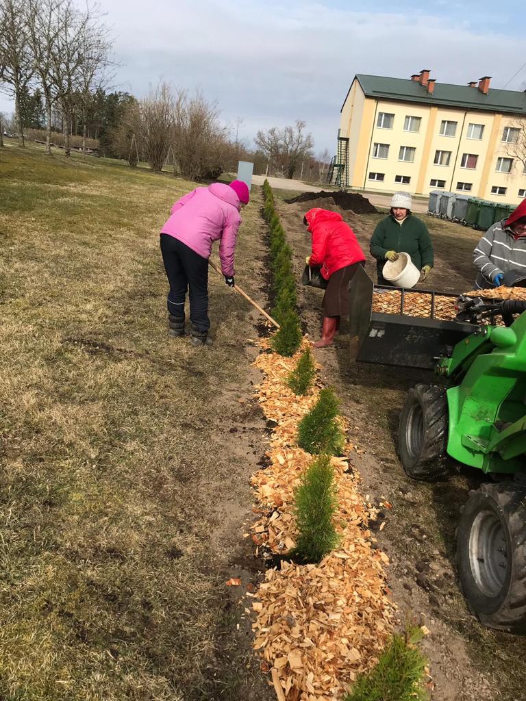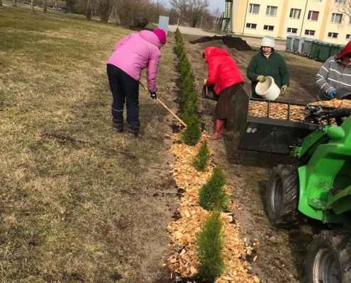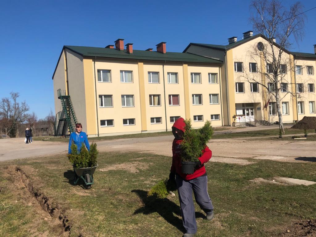 2020.gada pavasarī, kad covid -19 pandēmijas dēļ skolēni mācījās attālināti, tehniskie darbinieki pēc dārznieces Antras Miezītes iniciatīvas paralēli pīlādžu alejai iestādīja 32 tūjas, lai norobežotu kurtuves teritoriju.
