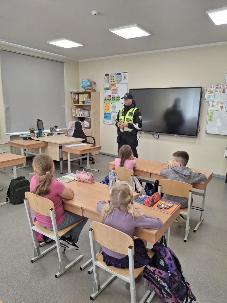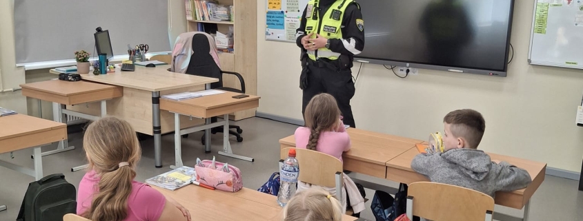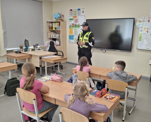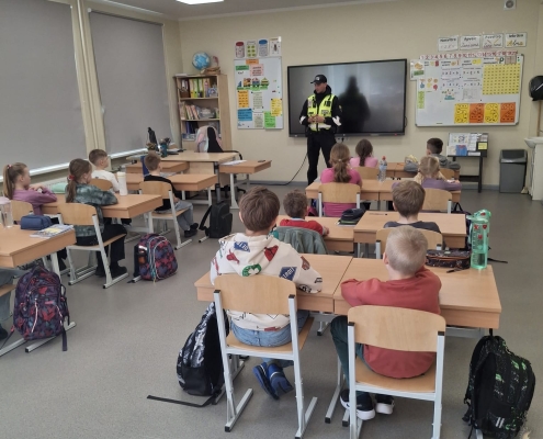 Preventīva tikšanās ar pašvaldības policijas darbinieku sākumskolā.