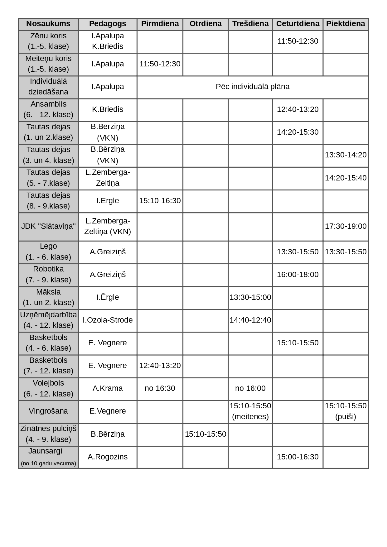 Interešu izglītība Vecpiebalgas vidusskolā 2025./2026.m.g. 1. semestrī