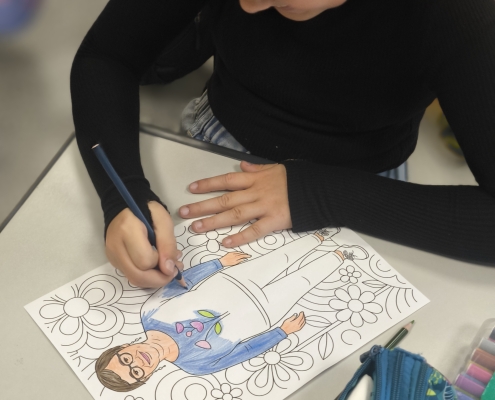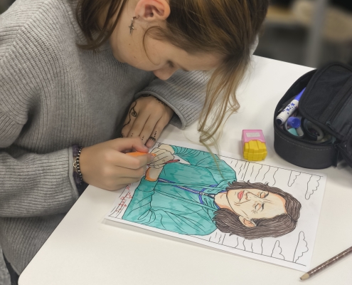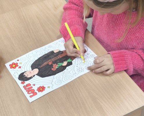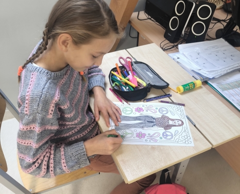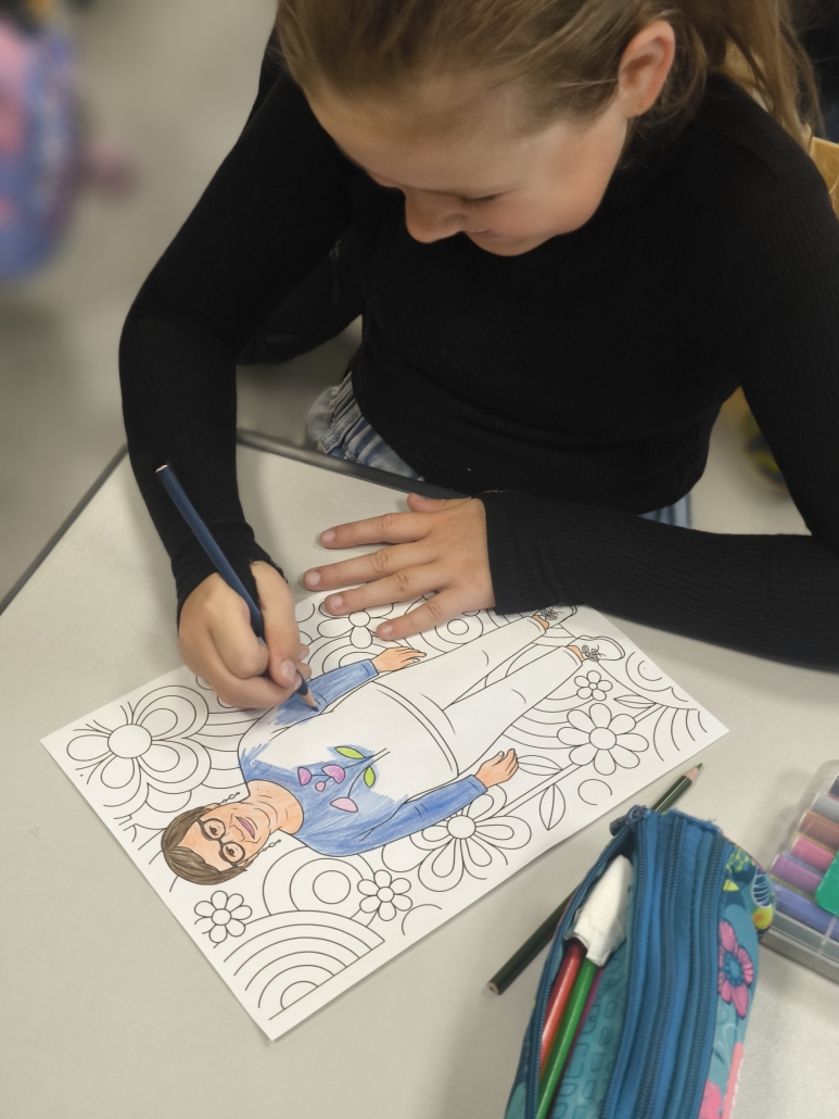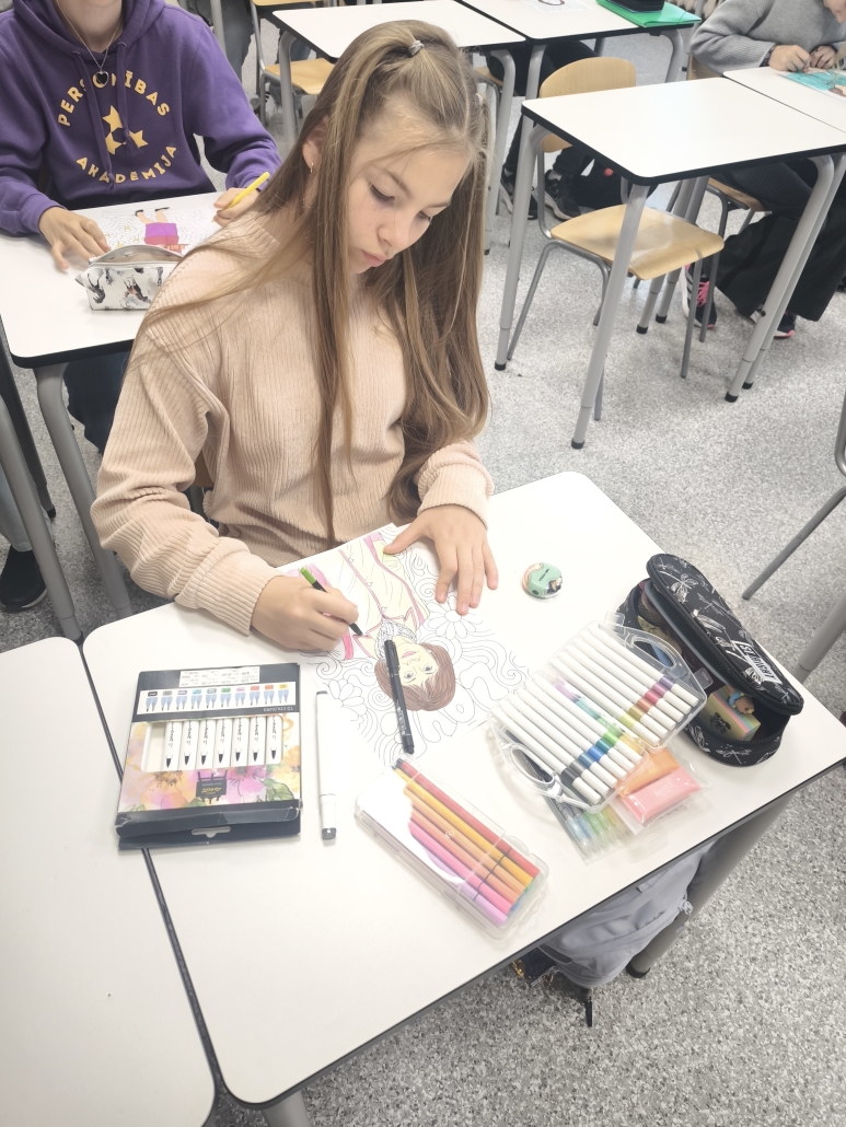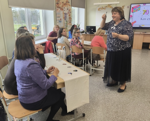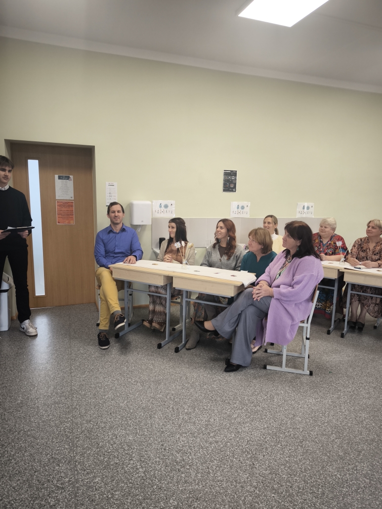 Pirmajā mācību stundā, kamēr skolotāji skolotāju istabā baudīja kafiju, sarunājās un viens otram teica labus vārdus, 8. klases skolēni bija iejutušies skolotāju lomā un vadīja stundas. Stundas laikā skolēniem bija radošs uzdevums — izkrāsot sagatavotās lapas ar mūsu skolas skolotāju attēliem.