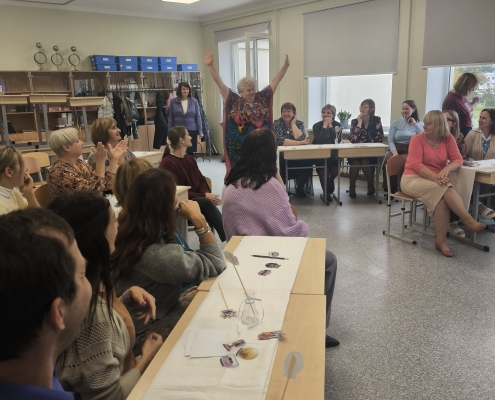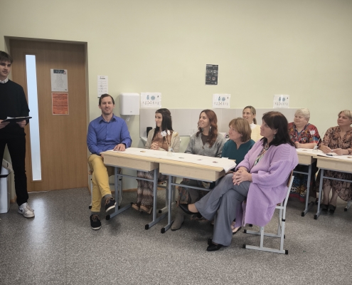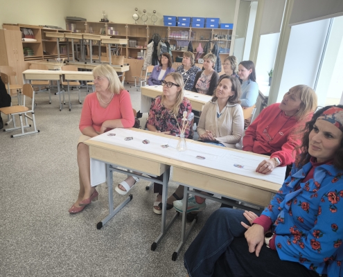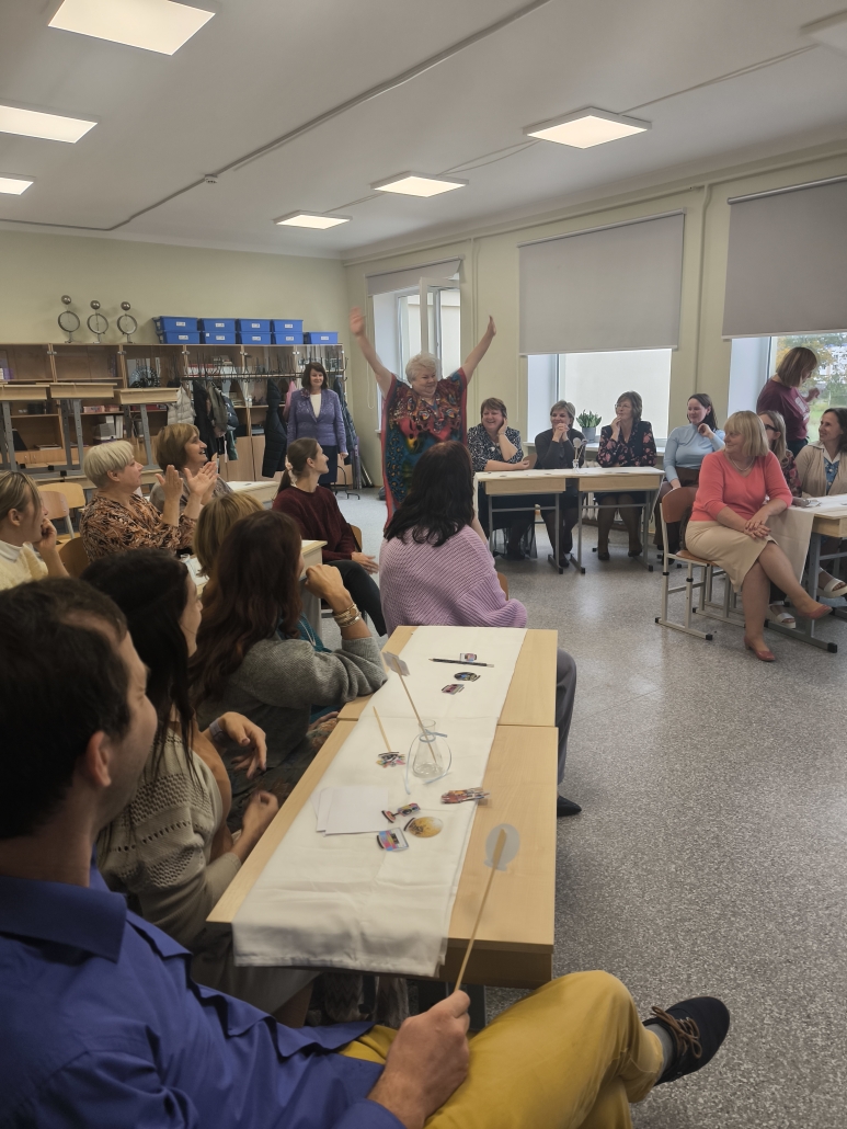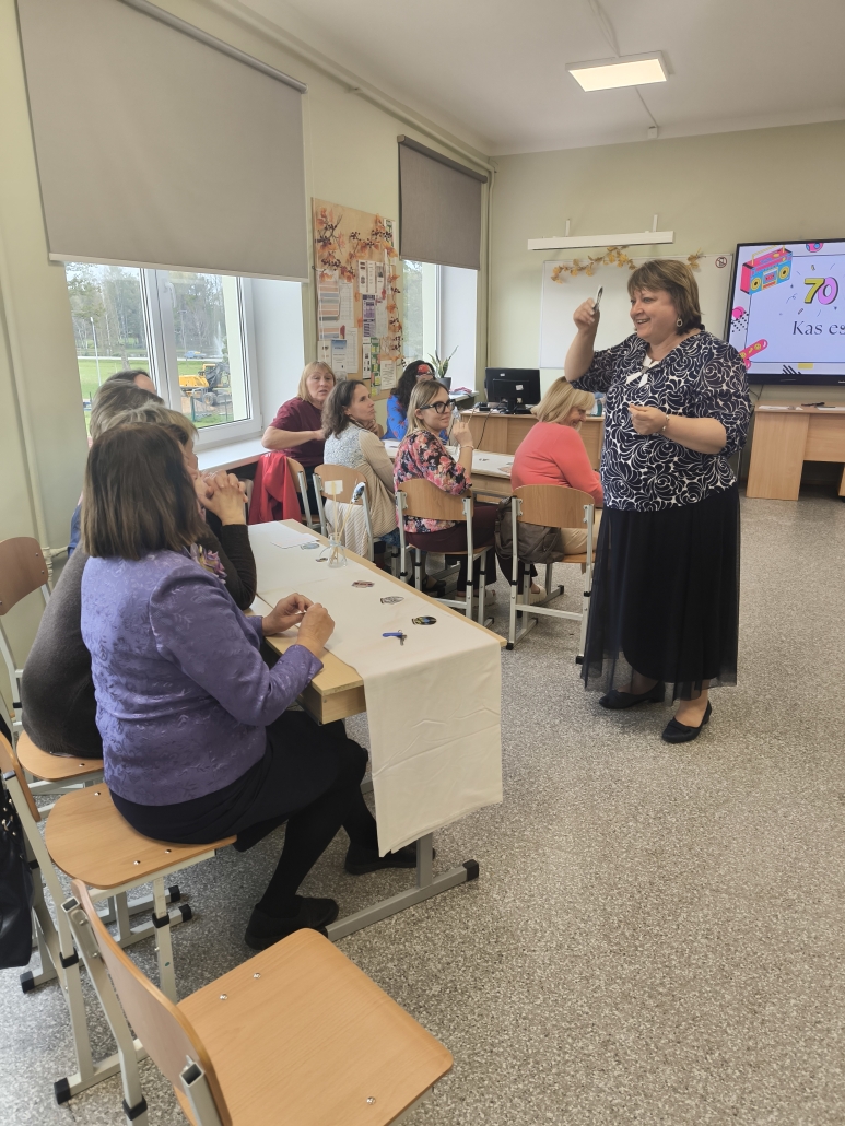 Kad skolēni pēcpusdienā devās mājās, 8. klases skolēni turpināja svētku dienas aktivitātes skolotājiem. Tika rīkota izklaidējoša pēcpusdiena ar dažādiem uzdevumiem. Skolotāji piedalījās viktorīnā, minēja dziesmas, iejutās modes pasaulē, gāja pa “mēli” kā īsti modeļi, kā arī centās atpazīt pazīstamas personības. Visi uzdevumi bija saistīti ar 70. gadu tēmu, kas pasākumam piešķīra īpašu noskaņu un retro šarmu. Un beigās skolotājiem tika izsniegtas bērnu izkrāsotās lapas.