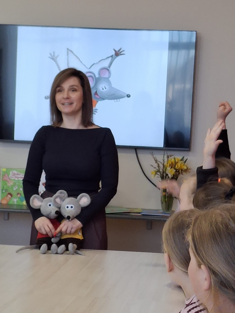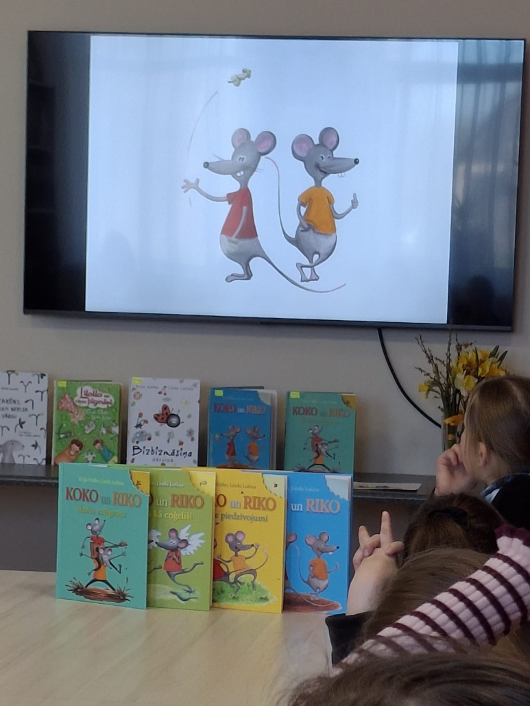 22.aprīlī Vecpiebalgas pagasta bibliotēkā 1.un 2.klases skolēni tikās ar rakstnieci Eviju Gulbi. Rakstniece pastāstīja, kā radās ideja populārās ,,Koko un Riko” grāmatu sērijas par divu žurkulēnu piedzīvojumiem. Tās ir veltītas vecākajai meitai Elizabetei. No stāstītā uzzinājām, ka Elizabetei bērnībā ļoti patika dzīvnieki, un ģimene iegādājās žurkulēnu, kuru nosauca par Koko. Interesanti bija uzzināt, kā tapa ilustrācijas grāmatām.