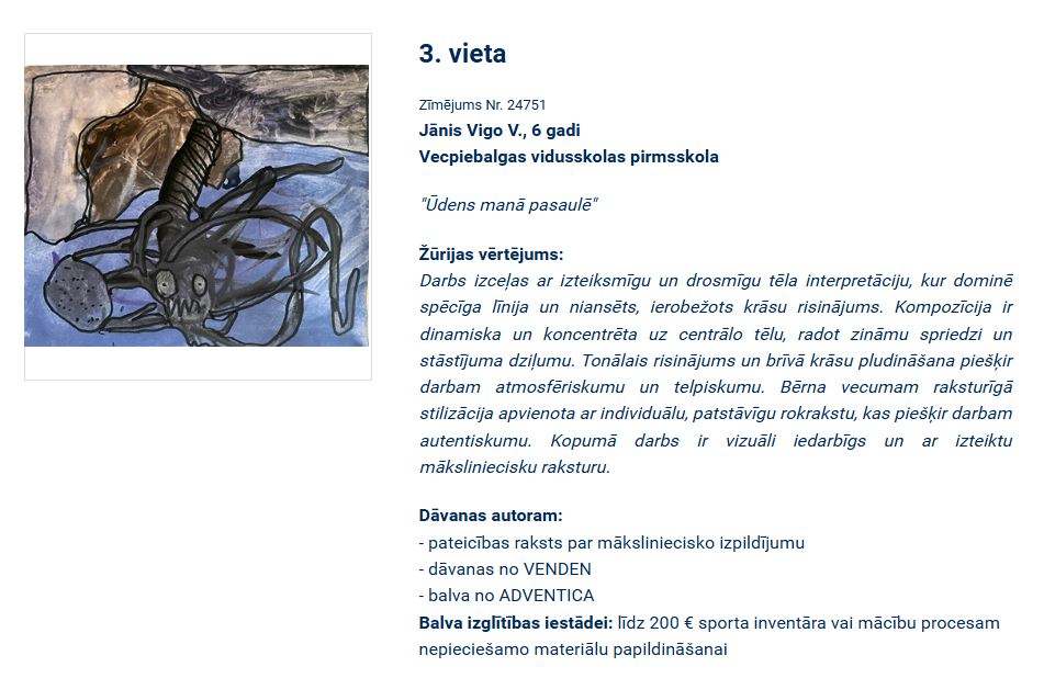 VENDEN 2026. gada bērnu zīmējumu konkurss “Ūdens mūsu pasaulē”