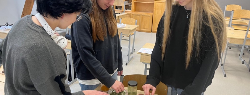 28.novembrī 12.klases skolēniem bija iespēja piedalīties ZAAO vides izglītības projektu vadītājas Evijas Tiltiņas vadītajā starpdisciplinārajā nodarbībā “Mūsdienu zaļā domāšana virtuvē”, kuras mērķis bija pievērst jauniešu uzmanību bioloģisko resursu nozīmei un lomai aprites ekonomikā, kā arī aktualizēt mūsdienu vides jautājumus saistošā, praktiskā veidā.
