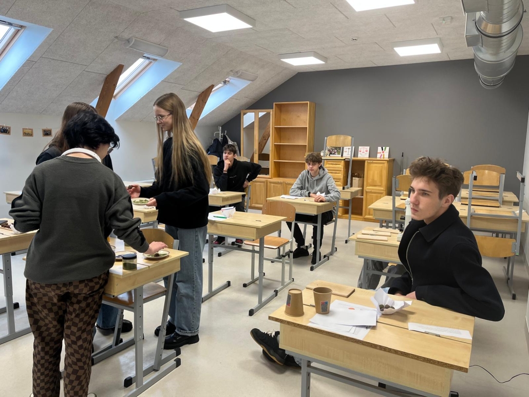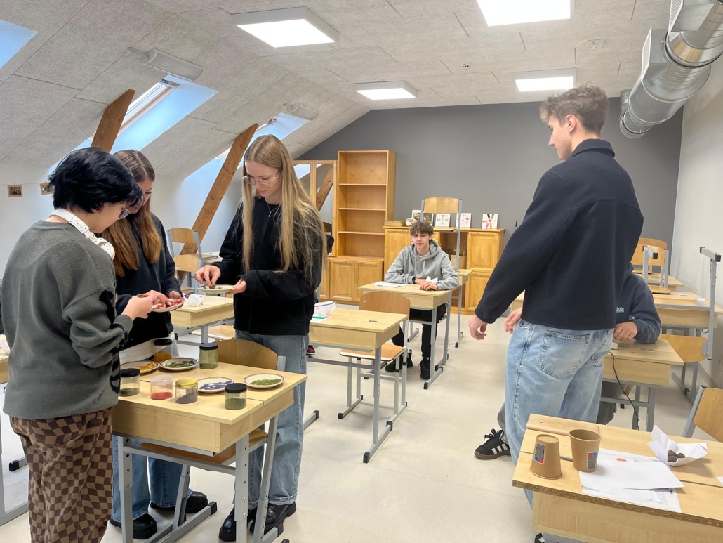 28.novembrī 12.klases skolēniem bija iespēja piedalīties ZAAO vides izglītības projektu vadītājas Evijas Tiltiņas vadītajā starpdisciplinārajā nodarbībā “Mūsdienu zaļā domāšana virtuvē”, kuras mērķis bija pievērst jauniešu uzmanību bioloģisko resursu nozīmei un lomai aprites ekonomikā, kā arī aktualizēt mūsdienu vides jautājumus saistošā, praktiskā veidā.